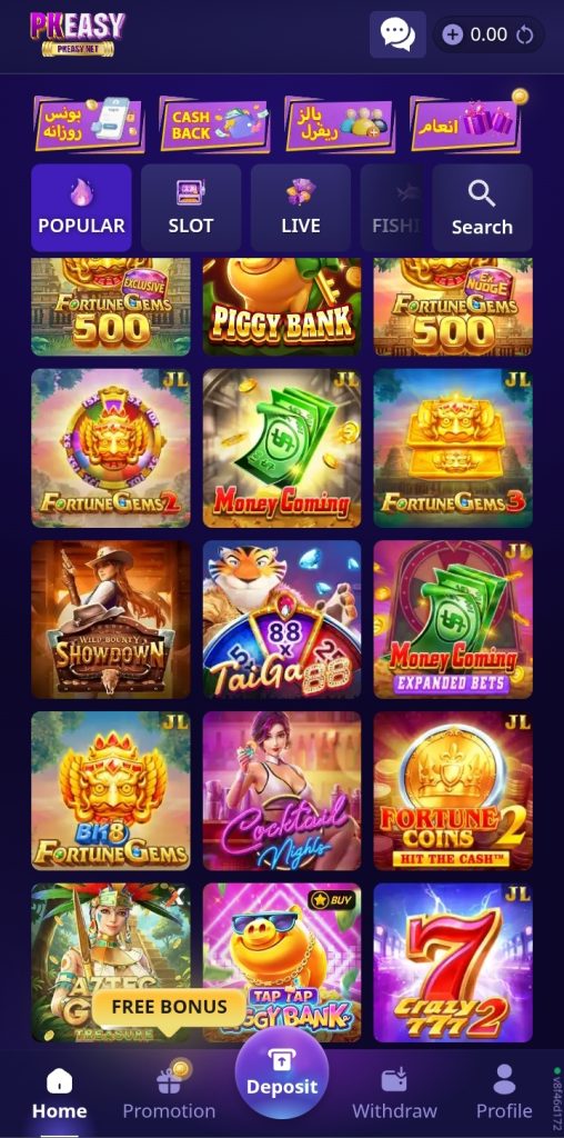 PK Easy Game is designed for Android users who want a simple and smooth gaming experience. It offers multiple games, fast transactions, and easy account management. Many similar Pakistani gaming apps provide features like real cash rewards, quick withdrawals, and mobile wallet support su ch as JazzCash and EasyPaisa . That is why apps like PKEasy Game are growing very fast in popularity.