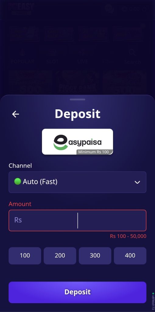 Depositing money in PK Easy Game is easy and user-friendly. First, log in to your account and go to the deposit section.